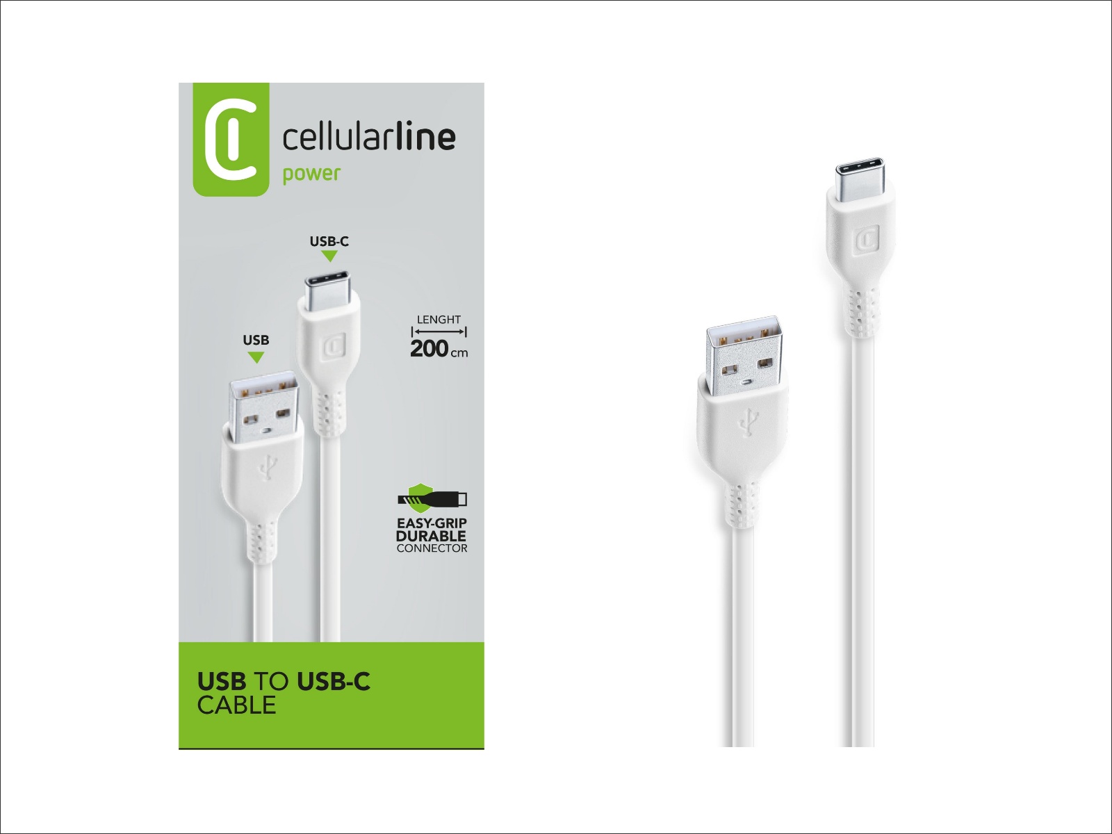 cellularline USB-A Kabel auf USB-C 2,0m, weiß