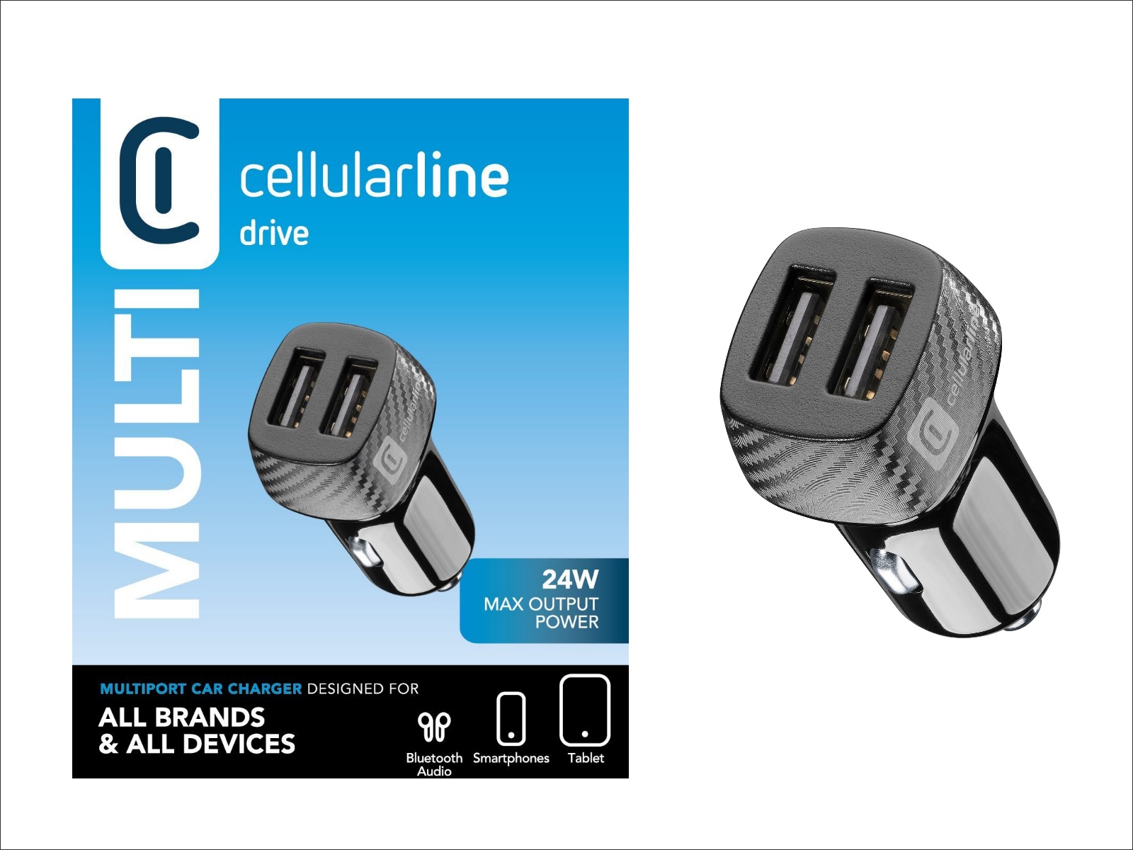 cellularline Car Charger Multipower, 2x USB-A, max. 2A / 24W 12/24V, schwarz